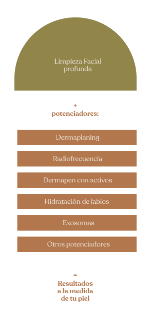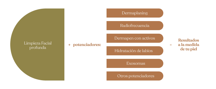 Comenzá con una limpieza facial y un diagnóstico profesional. Te escuchamos, evaluamos tu piel y te ayudamos a personalizar tu experiencia con los potenciadores ideales: dermaplaning, electroporación, radiofrecuencia, hidratación de labios, extracciones y más.